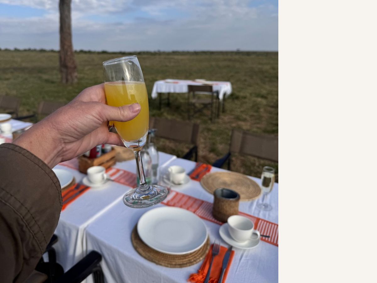 An hour later, land in the bush and you are treated to a Champagne breakfast set among tall grasses, one of those surreal travel moments you’ll talk about forever.
